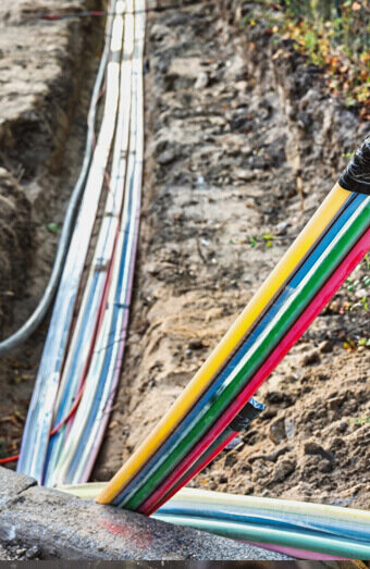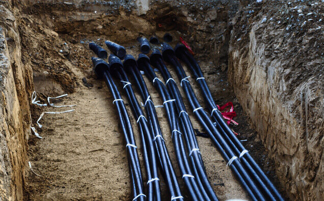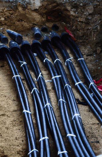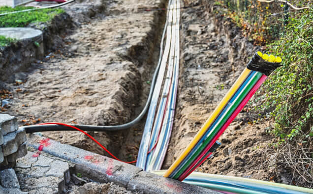 Complete installation of underground service cables from the nearest network pillar or pit to your property, including trenching, conduit installation and terminations.